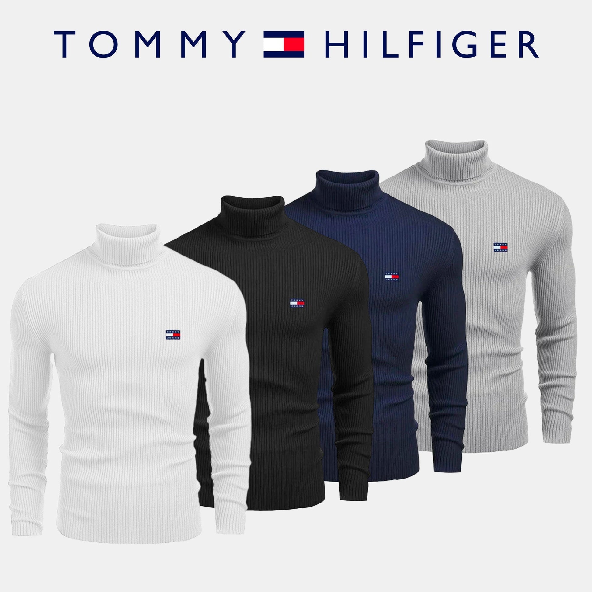 Sublimez votre garde-robe avec le pull col roulé en maille côtelée TH, conçu pour allier style et confort. Ce pull polyvalent, avec sa coupe ajustée, sa texture côtelée et le logo iconique TH brodé sur la poitrine, est parfait pour superposer ou porter seul, ajoutant une touche d’élégance à toutes vos tenues.